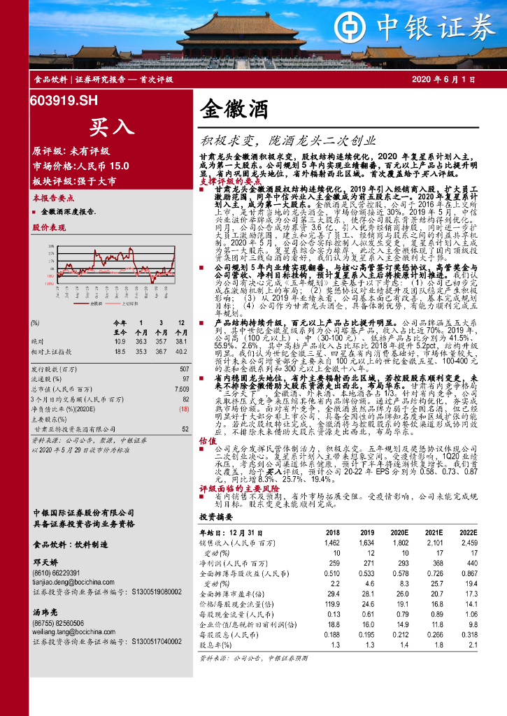 中银证券:金徽酒(603919)-积极求变,陇酒龙头二次创业.pdf
