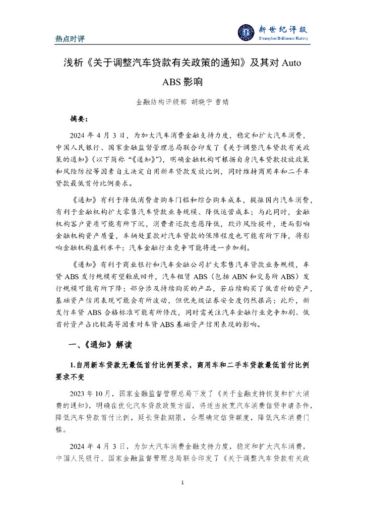 新世纪评级:浅析《关于调整汽车贷款有关政策的通知》及其对Auto ABS影响.pdf