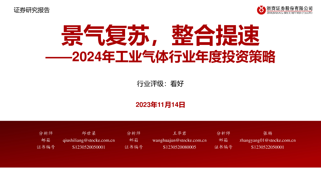 浙商证券:2024年工业气体行业年度投资策略:景气复苏,整合提速.pdf