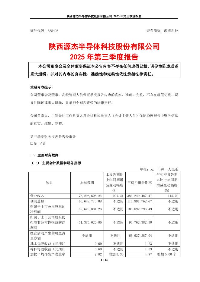 688498-源杰科技:陕西源杰半导体科技股份有限公司2025年第三季度报告.pdf