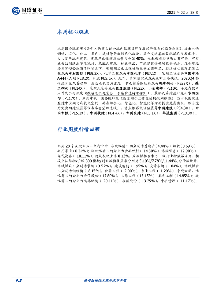 国盛证券:建筑装饰行业周报:碳中和首推水泥工业升级龙头中材国际,经济复苏看好装饰龙头金螳螂.pdf
