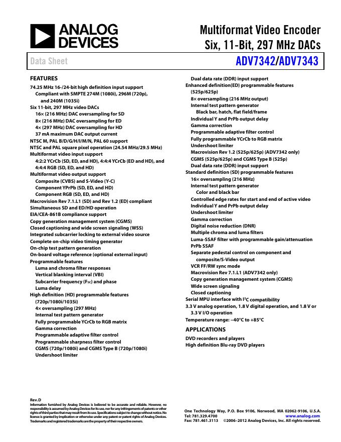 ANALOG DEVICES ADV7342 英文产品数据手册.pdf