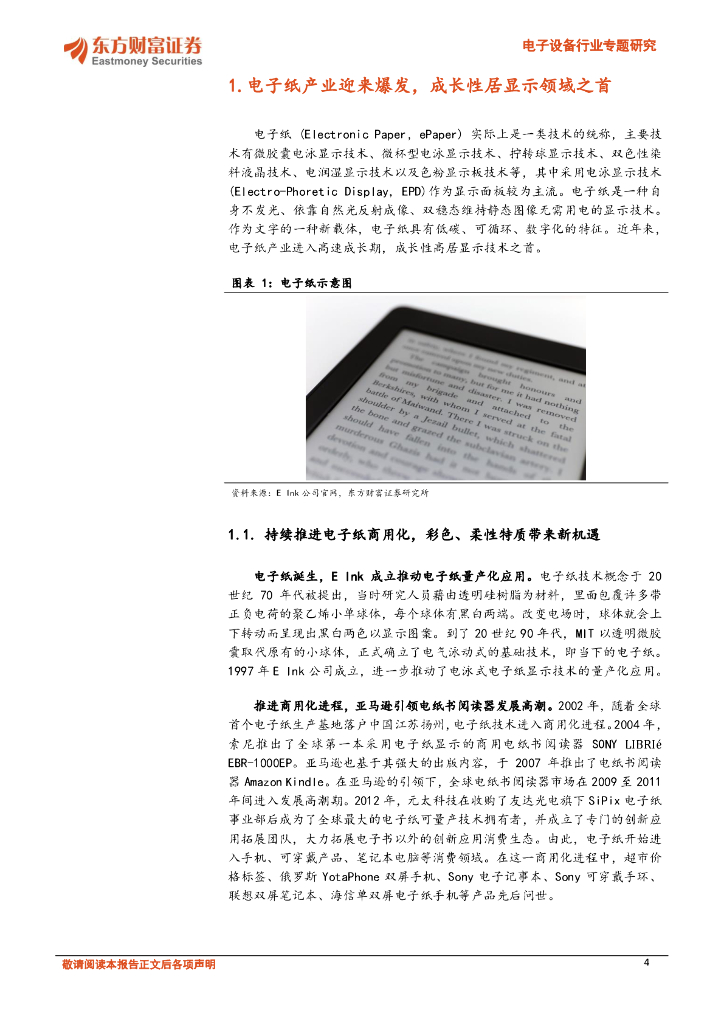 东方财富证券:光学光电子系列报告之二:电子纸产业逆势成长,产业应用格局已打开.pdf