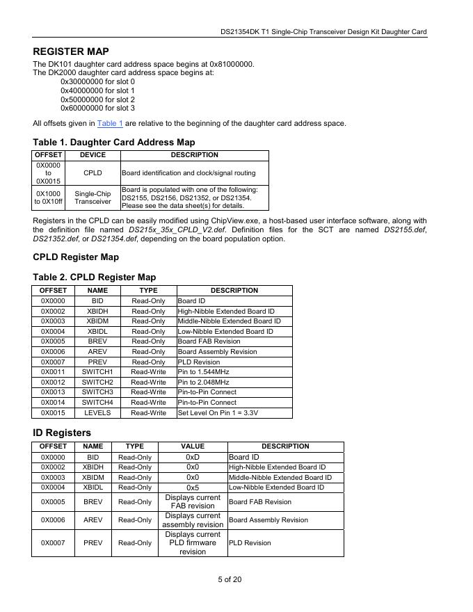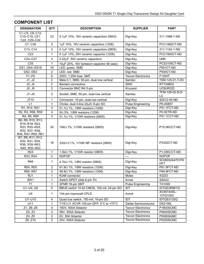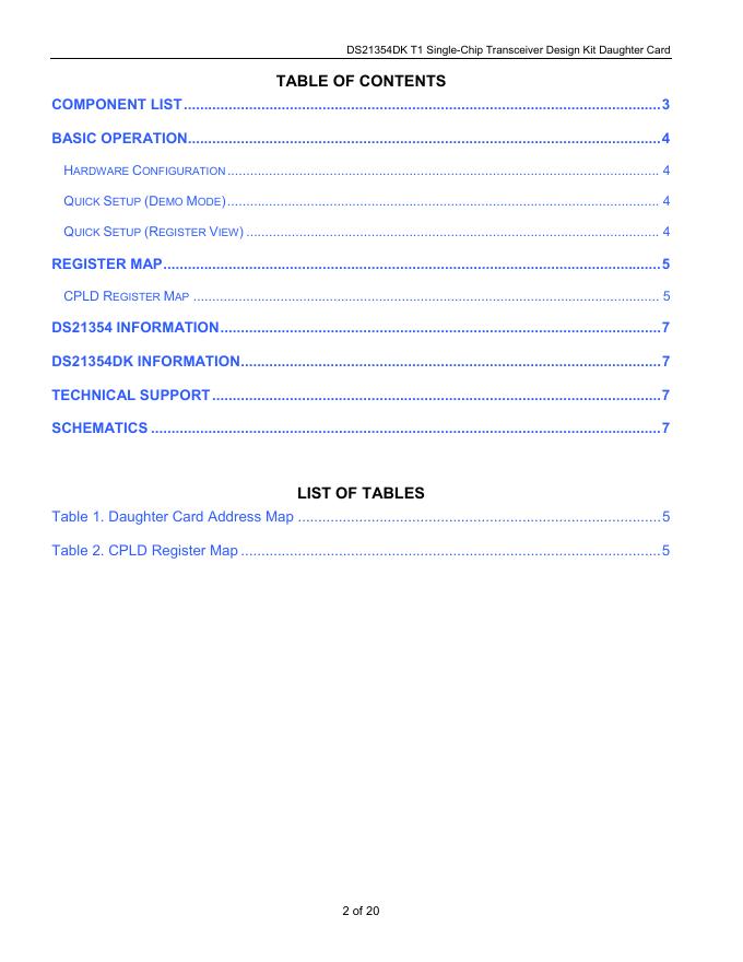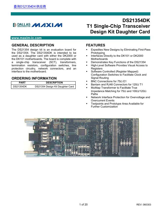 MAXIM DS21354DK T1 Single-Chip Transceiver Design Kit Daughter Card 数据手册.pdf