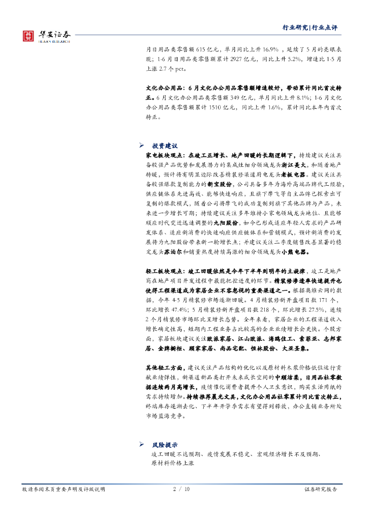 华安证券:家电轻工:6月地产新开工高增,家电快速恢复,轻工必选消费表现靓丽.pdf