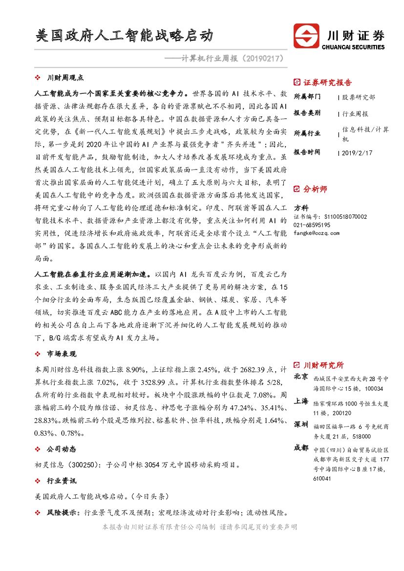 川财证券:计算机行业周报:美国政府人工智能战略启动.pdf
