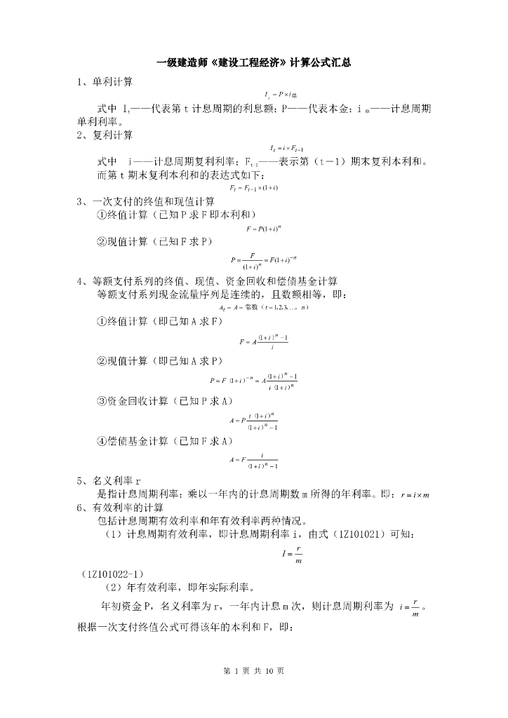 一建经济公式汇总.pdf