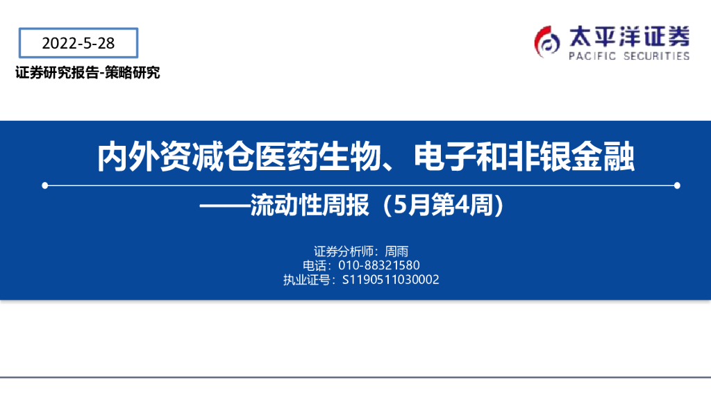 太平洋证券:流动性周报(5月第4周):内外资减仓医药生物、电子和非银金融.pdf