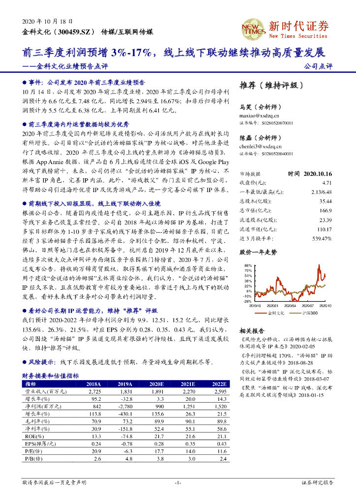 新时代证券:金科文化业绩预告点评:前三季度利润预增3%-17%,线上线下联动继续推动高质量发展.pdf