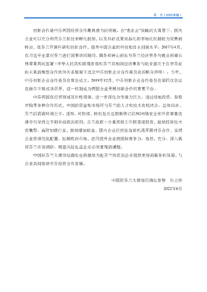 商务部:对外投资合作国别(地区)指南:芬兰(2022年版).pdf