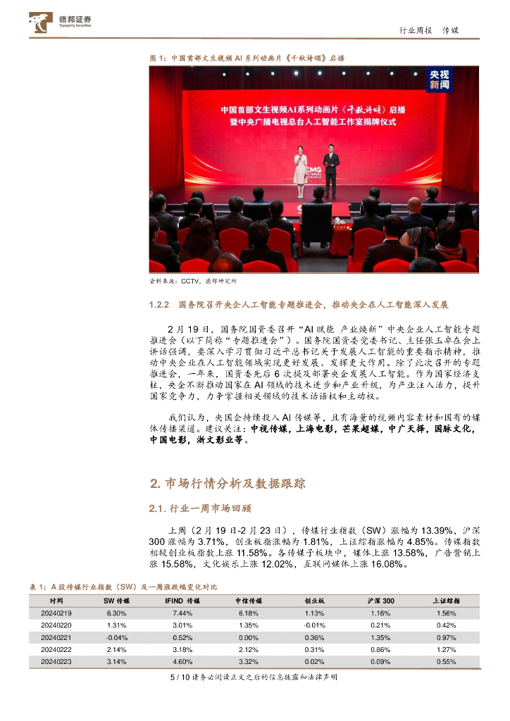 德邦证券:传媒互联网行业周报:央视听大模型研发共同体创立;国务院召开央企人工智能专题推进会.pdf