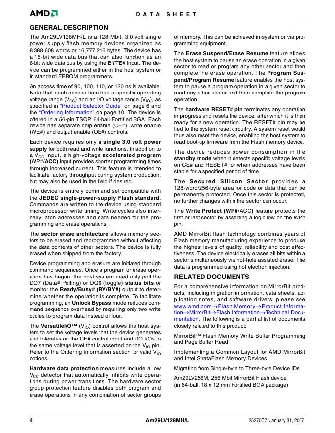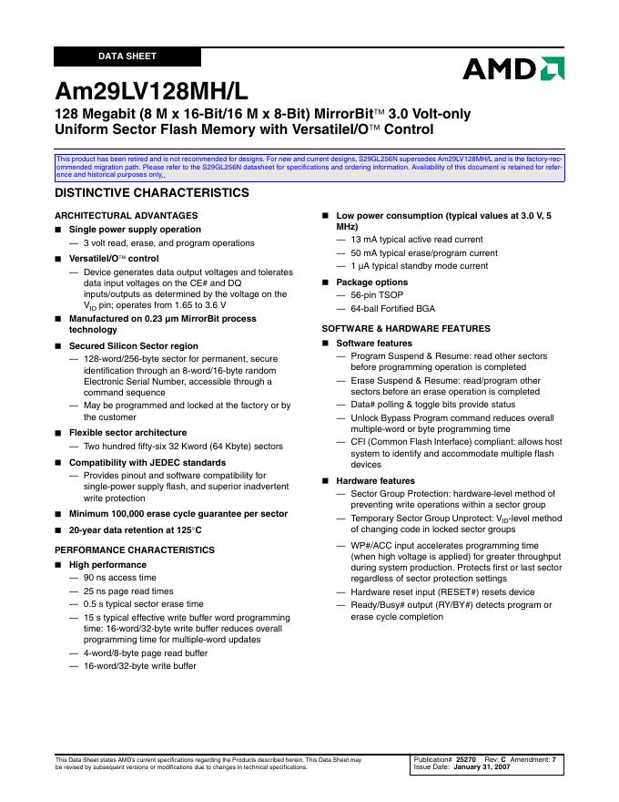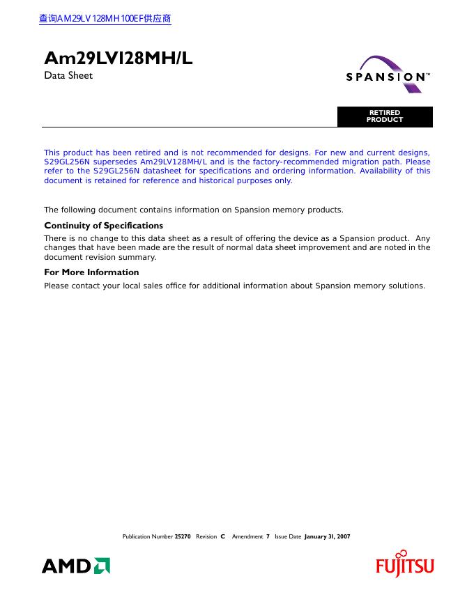 AMD FUJITSU SPANSION Am29LV128MH/L 数据手册.pdf