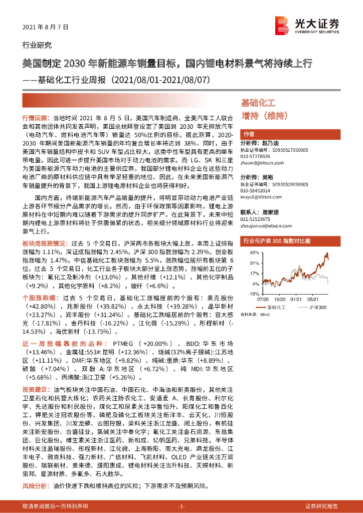 光大证券:基础化工行业周报:美国制定2030年新能源车销量目标,国内锂电材料景气将持续上行.pdf