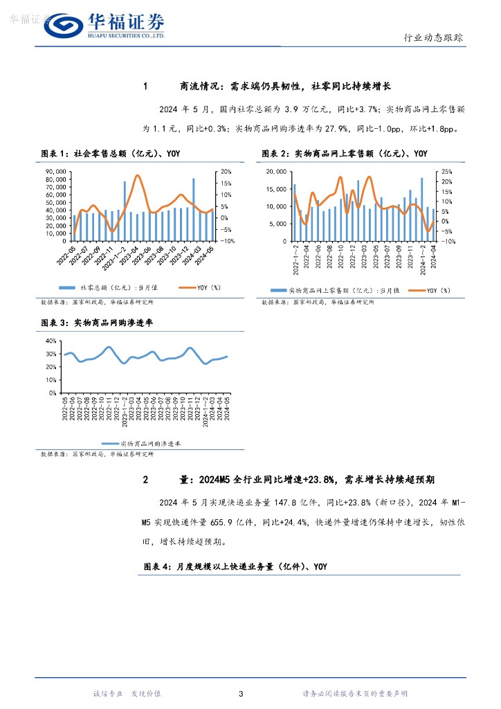 华福证券:2024年5月快递行业数据点评:5月行业件量同比+23.8%,需求持续强势增长.pdf