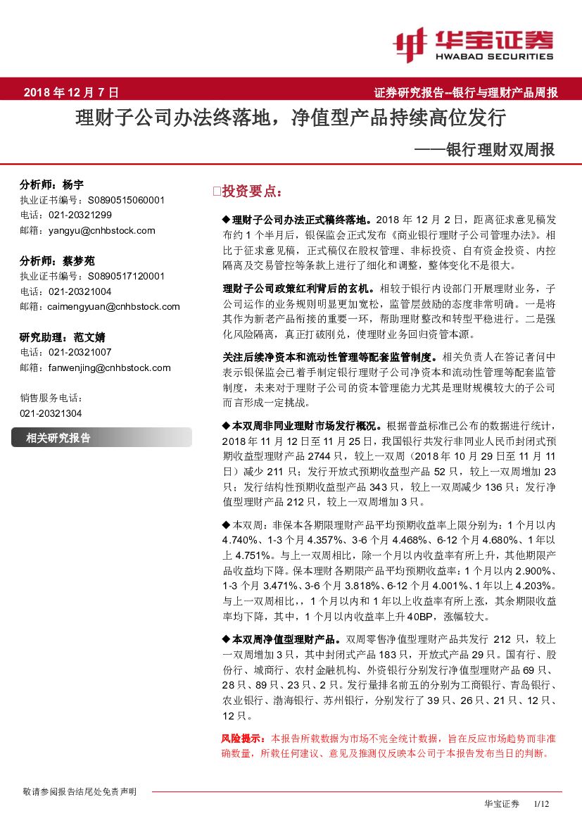 华宝证券:银行理财双周报:理财子公司办法终落地,净值型产品持续高位发行.pdf
