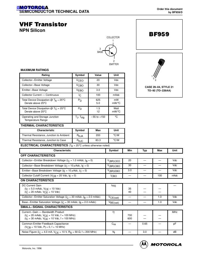 MOTOROLA Semiconductor BF959 数据手册.pdf