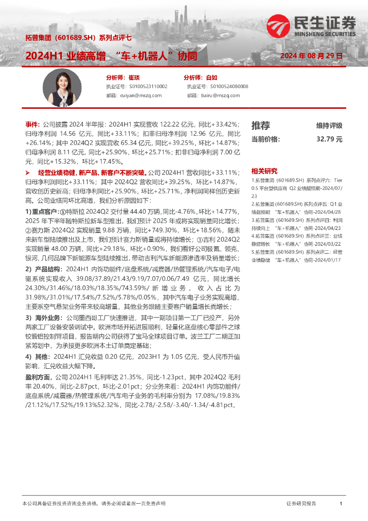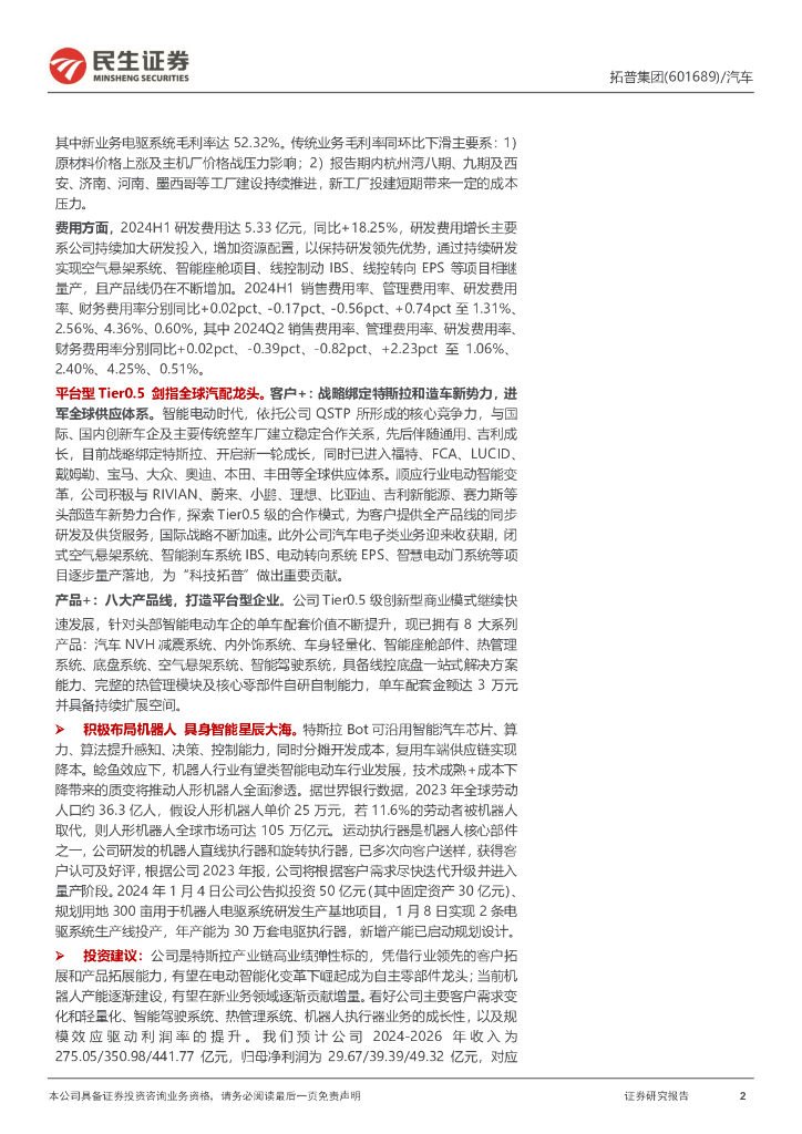 民生证券:拓普集团(601689)-系列点评七:2024H1业绩高增“车+机器人”协同.pdf
