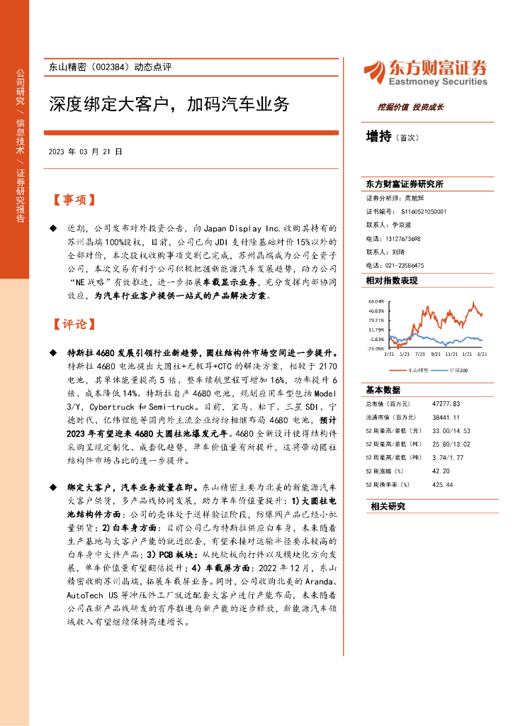 东方财富证券:东山精密(002384)-动态点评:深度绑定大客户,加码汽车业务.pdf