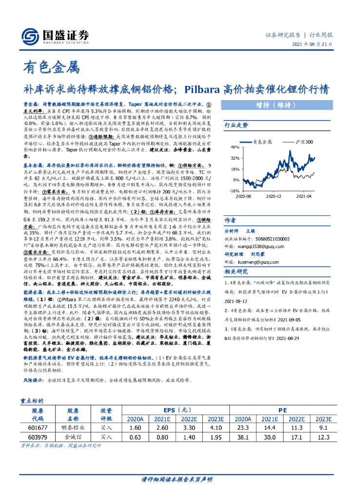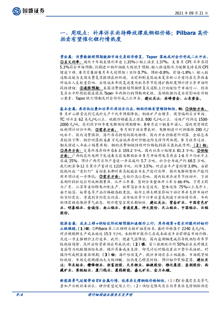 国盛证券:有色金属行业周报:补库诉求尚待释放撑底铜铝价格;Pilbara高价拍卖催化锂价行情.pdf