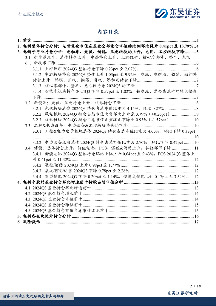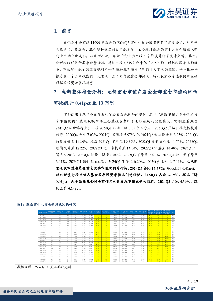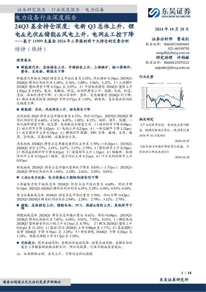 东吴证券:电力设备行业深度报告:基于11999支基金2024年三季报的前十大持仓的定量分析-24Q3基金持仓深度:电新Q3总体上升,锂电&光伏&储能&风电上升,电网&工控下降.pdf
