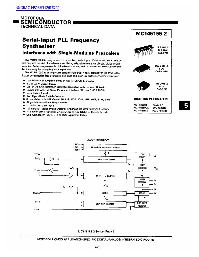 MOTOROLA Semiconductor MC145155-2 数据手册.pdf