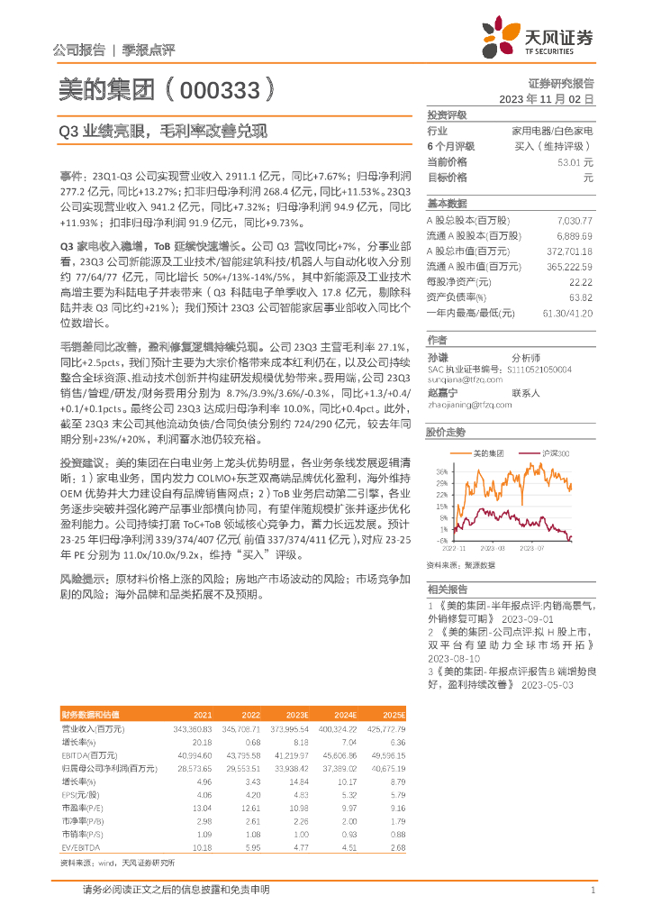 天风证券:美的集团(000333)-Q3业绩亮眼,毛利率改善兑现.pdf