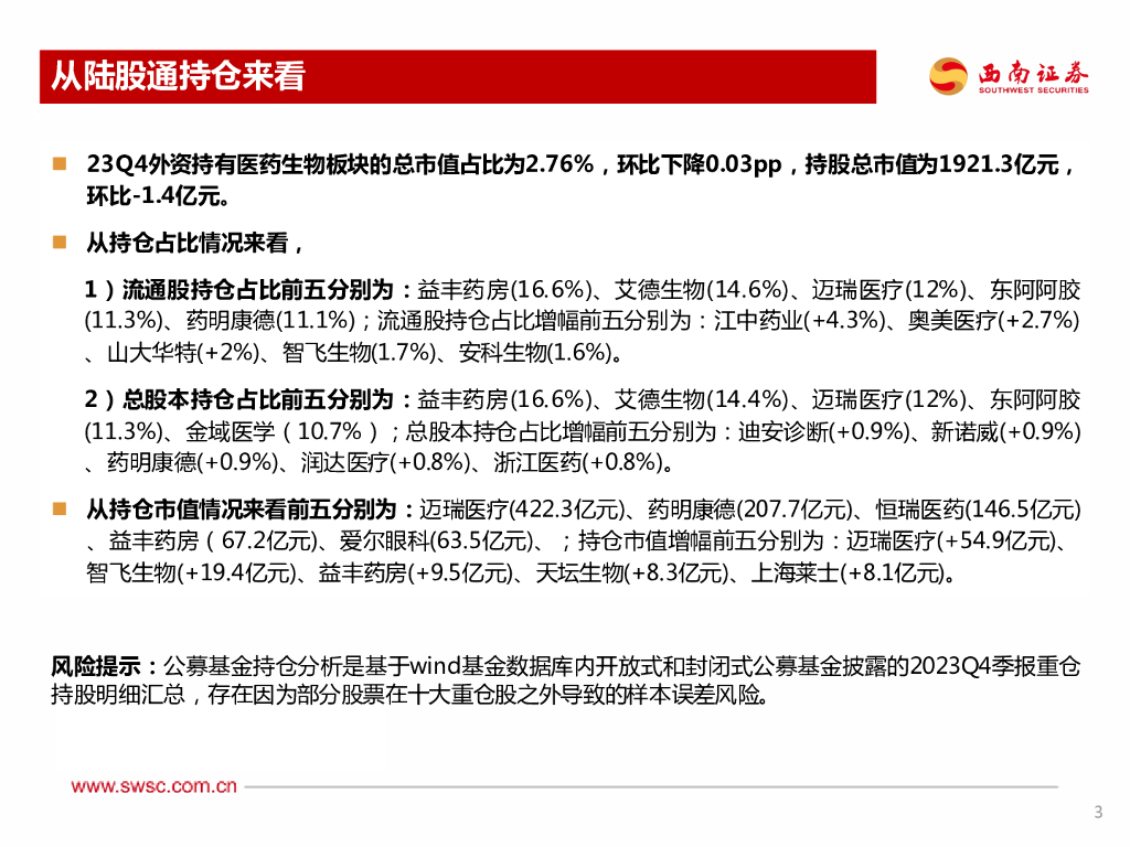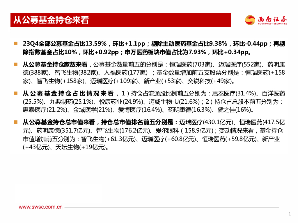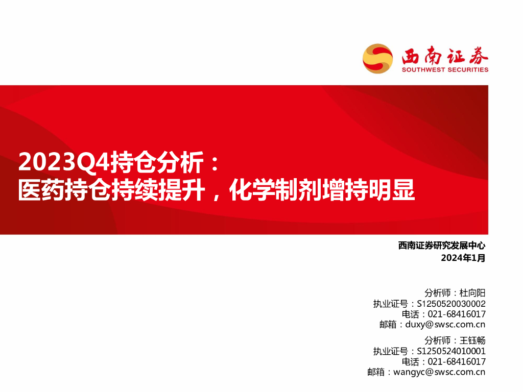 西南证券:医药行业2023Q4持仓分析:医药持仓持续提升,化学制剂增持明显.pdf
