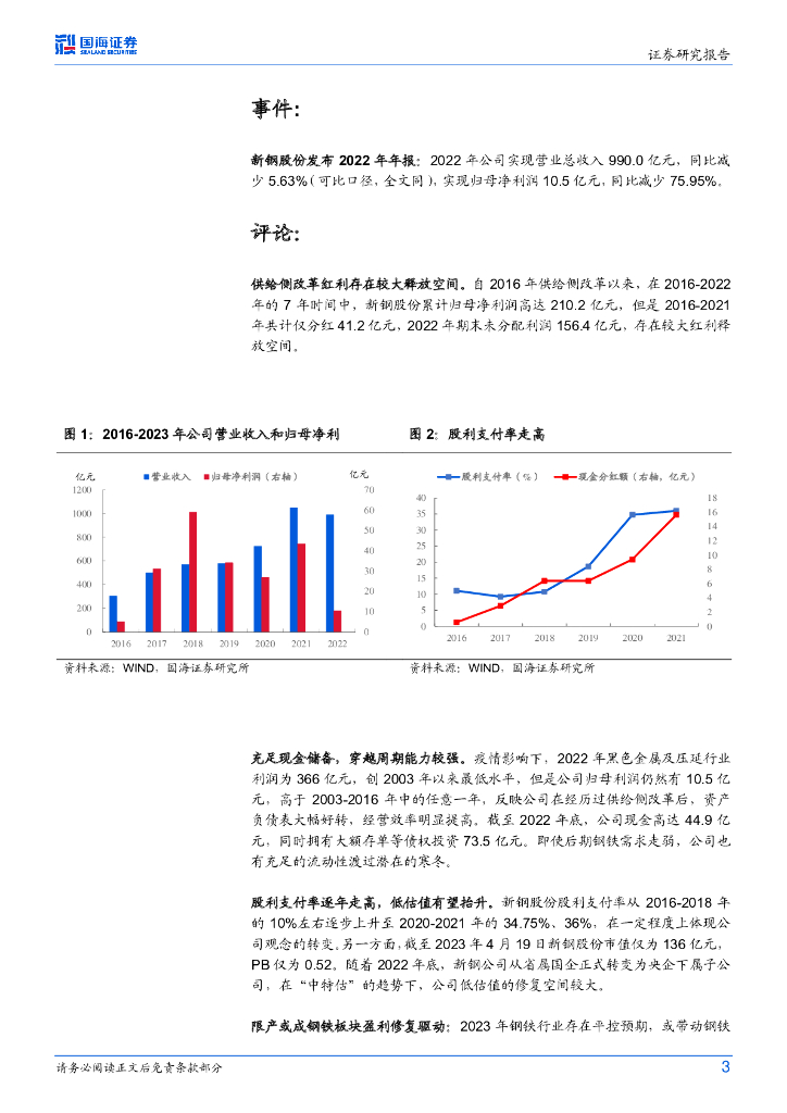 国海证券:新钢股份(600782)-2022年报点评:手握重金,低估值央企钢厂有望穿越周期.pdf