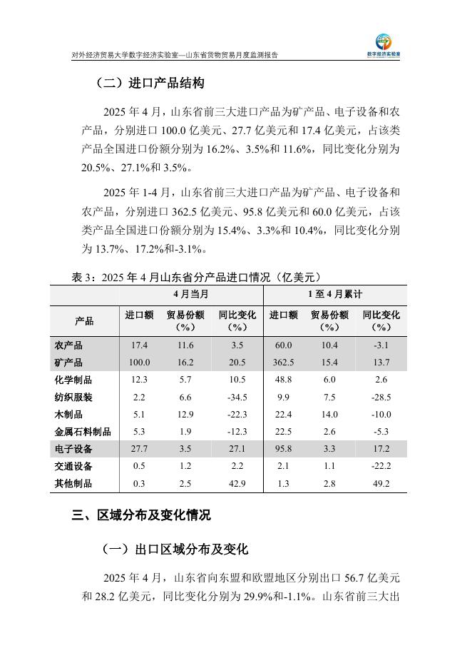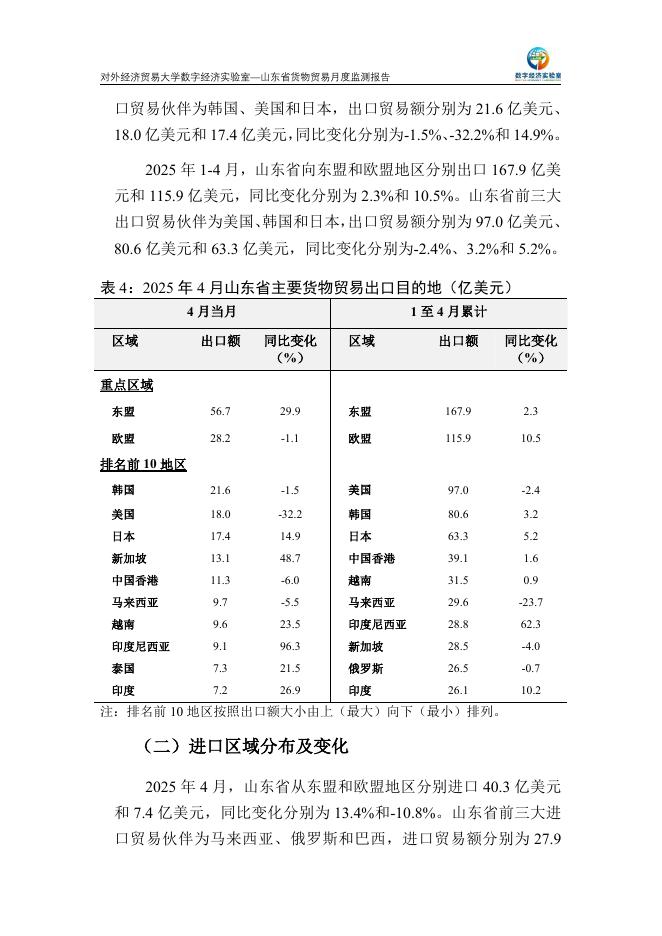 对外经济贸易大学:山东省货物贸易月度监测报告(2025年1-4月).pdf