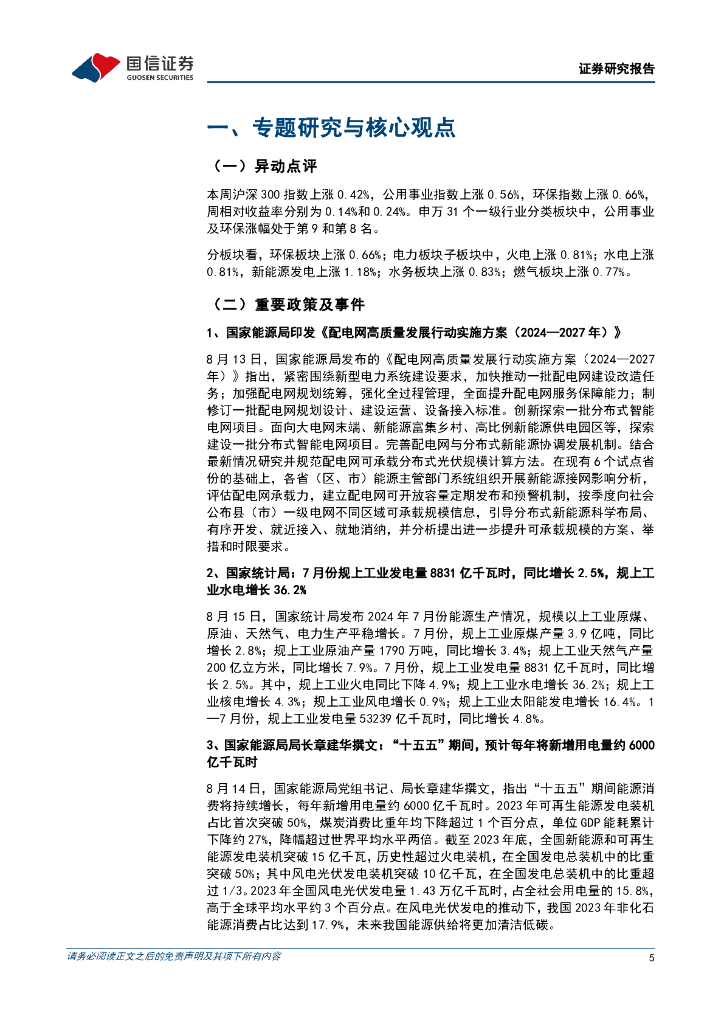 国信证券:公用环保行业202408第3期:配电网高质量发展推进,促进分布式新能源发展.pdf