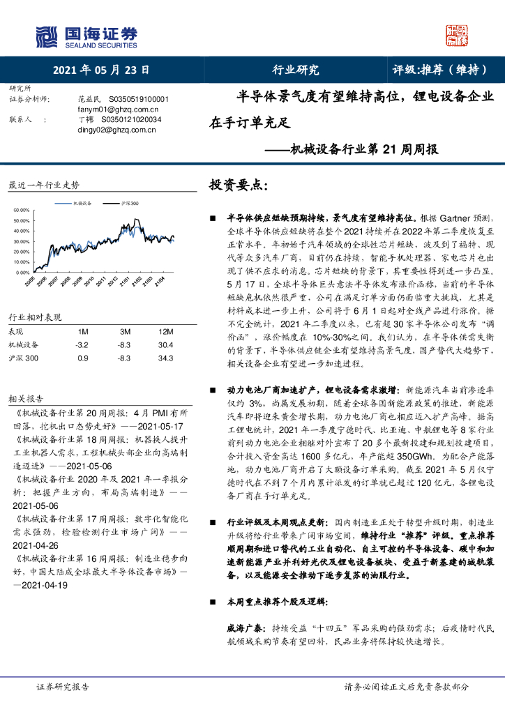 国海证券:机械设备行业第21周周报:半导体景气度有望维持高位,锂电设备企业在手订单充足.pdf