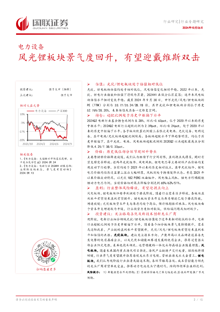 国联证券:电力设备行业专题研究:风光锂板块景气度回升,有望迎戴维斯双击.pdf