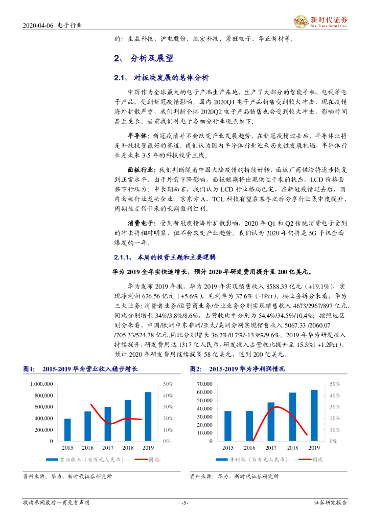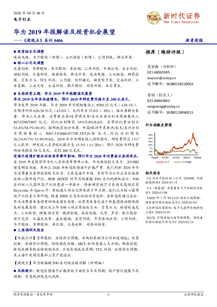 新时代证券:电子行业《周观点》系列:华为2019年报解读及投资机会展望.pdf