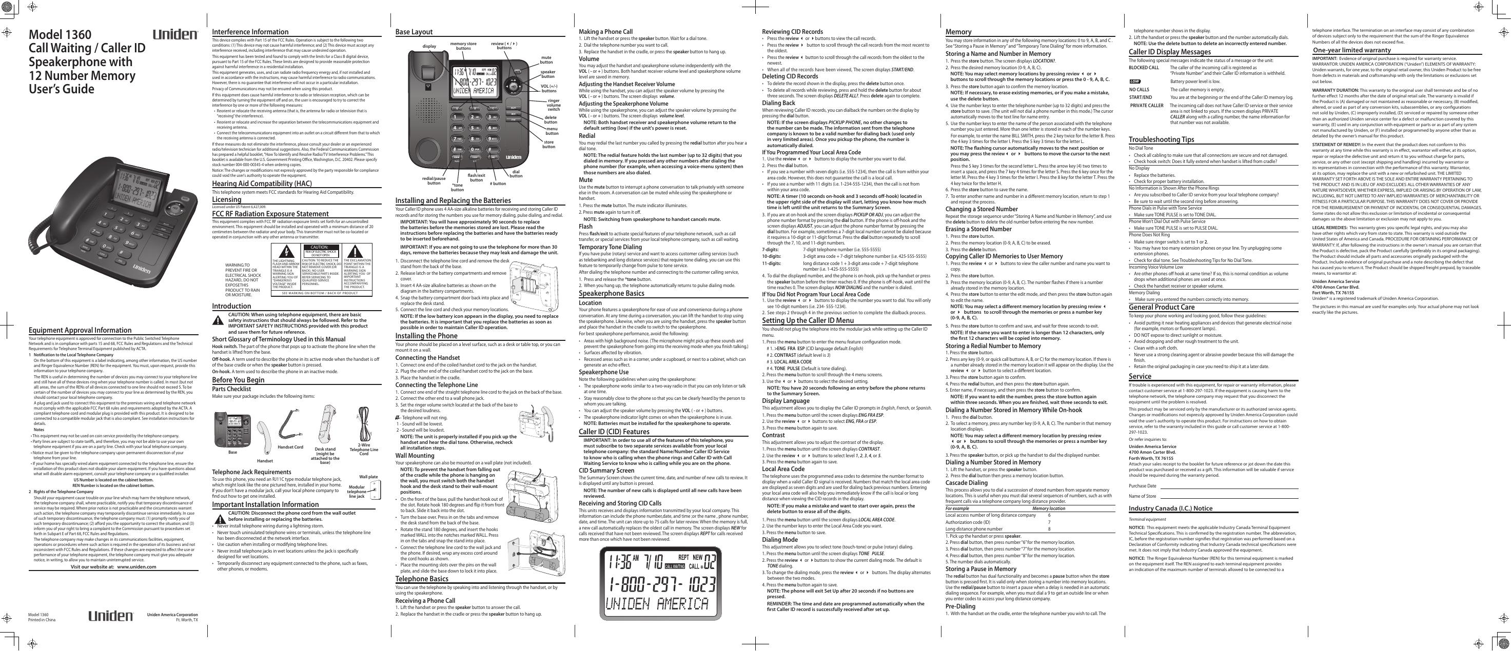 Uniden 1360 Call Waiting / Caller ID Speakerphone 用户指南.pdf