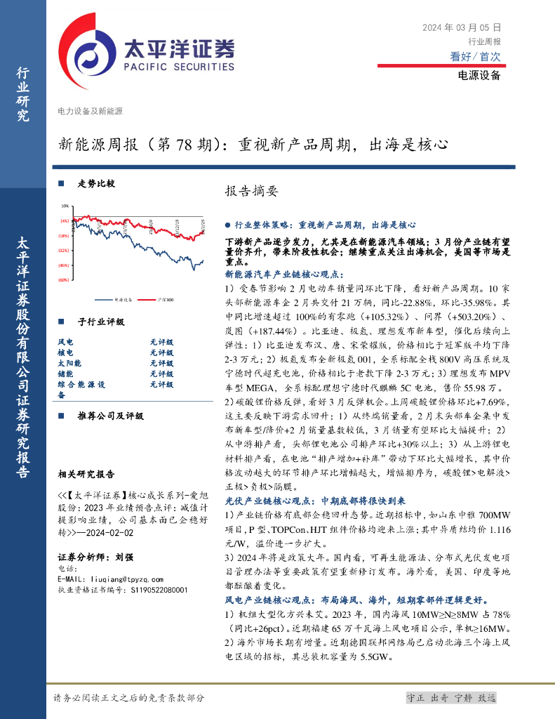 太平洋证券:新能源周报(第78期):重视新产品周期,出海是核心.pdf