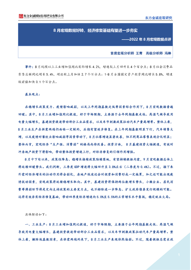 东方金诚: 2022年8月宏观数据点评-8月宏观数据好转,经济修复基础有望进一步夯实.pdf