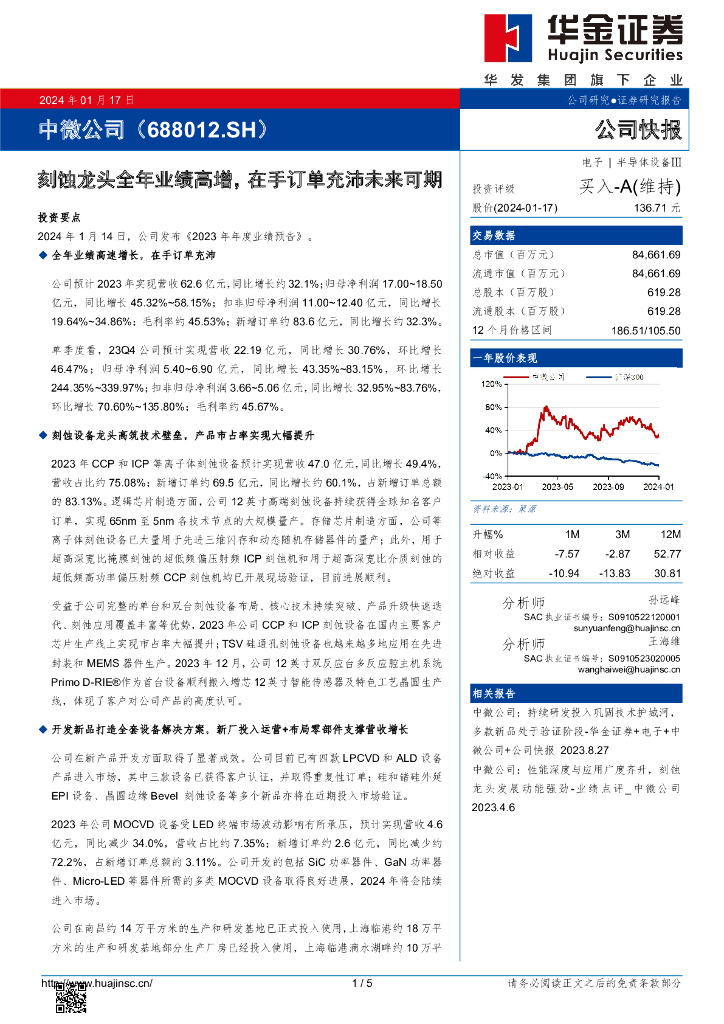 华金证券:中微公司(688012)-刻蚀龙头全年业绩高增,在手订单充沛未来可期.pdf