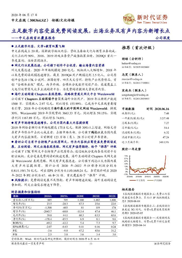 新时代证券:中文在线首次覆盖报告:立足数字内容受益免费阅读发展,出海业务及有声内容为新增长点.pdf