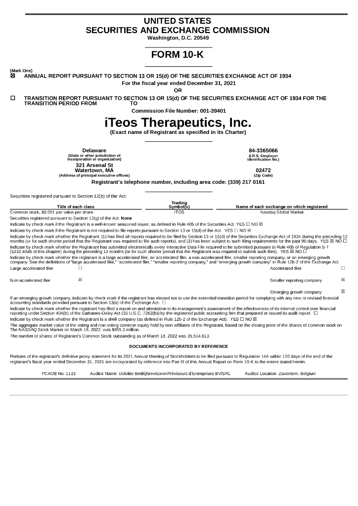 iTeos Therapeutics, Inc.(ITOS)2021财年年度报告(英文版).pdf