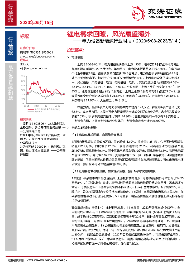 东海证券:电力设备新能源行业周报:锂电需求回暖,风光展望海外.pdf