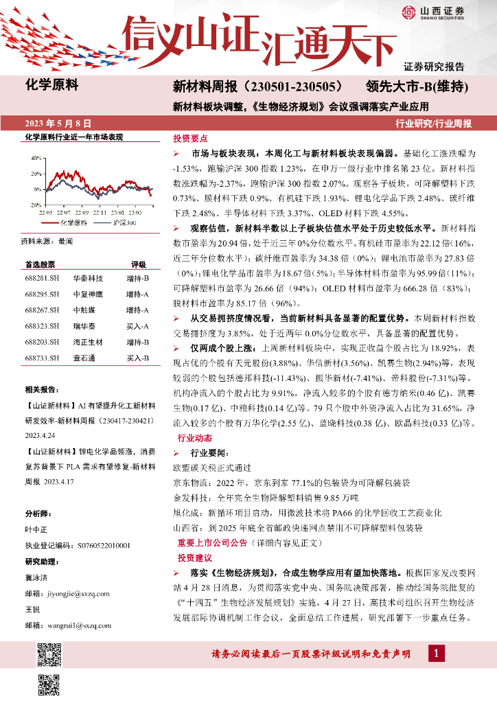 山西证券:化学原料新材料周报:新材料板块调整,《生物经济规划》会议强调落实产业应用.pdf