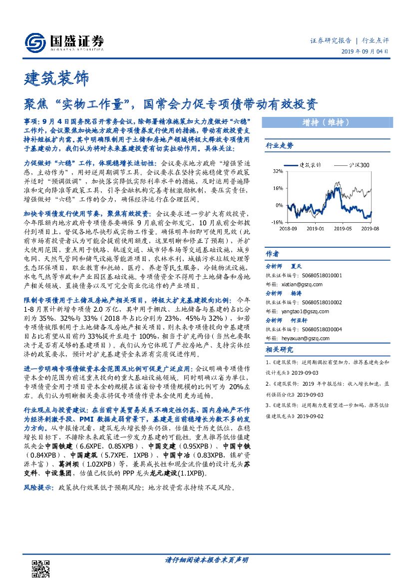 国盛证券:建筑装饰行业点评:聚焦“实物工作量”,国常会力促专项债带动有效投资.pdf