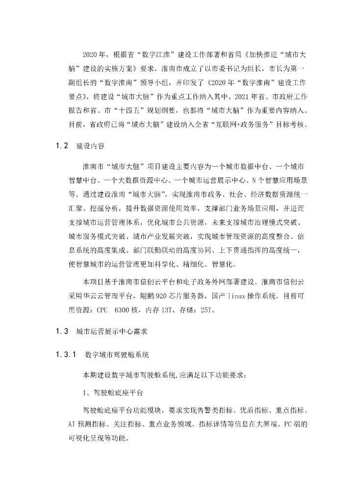 淮南市“城市大脑”项目 项目采购需求.pdf