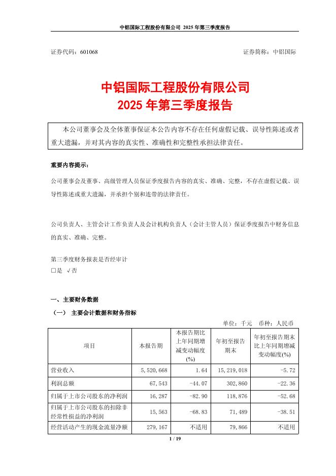601068-中铝国际:中铝国际工程股份有限公司2025年第三季度报告.pdf