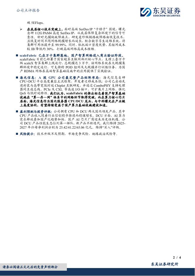 东吴证券:海光信息(688041)-中科曙光scaleFabric国产原生RDMA高速网络首发,智算基础设施自主化加速.pdf