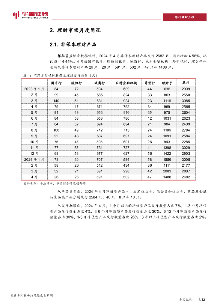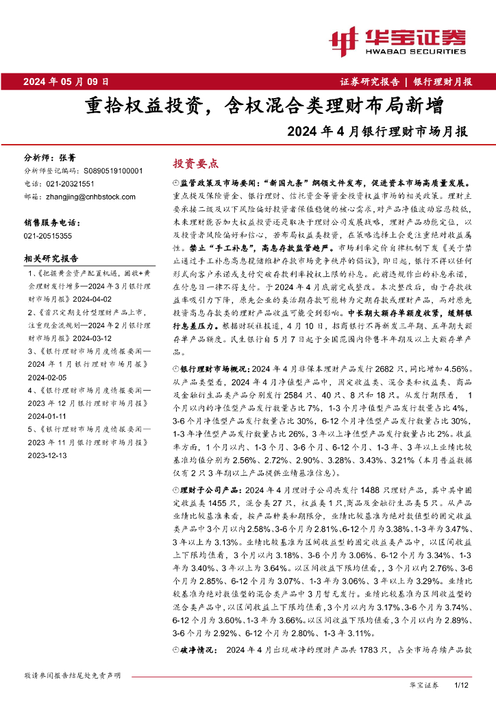 华宝证券:2024年4月银行理财市场月报:重拾权益投资,含权混合类理财布局新增.pdf