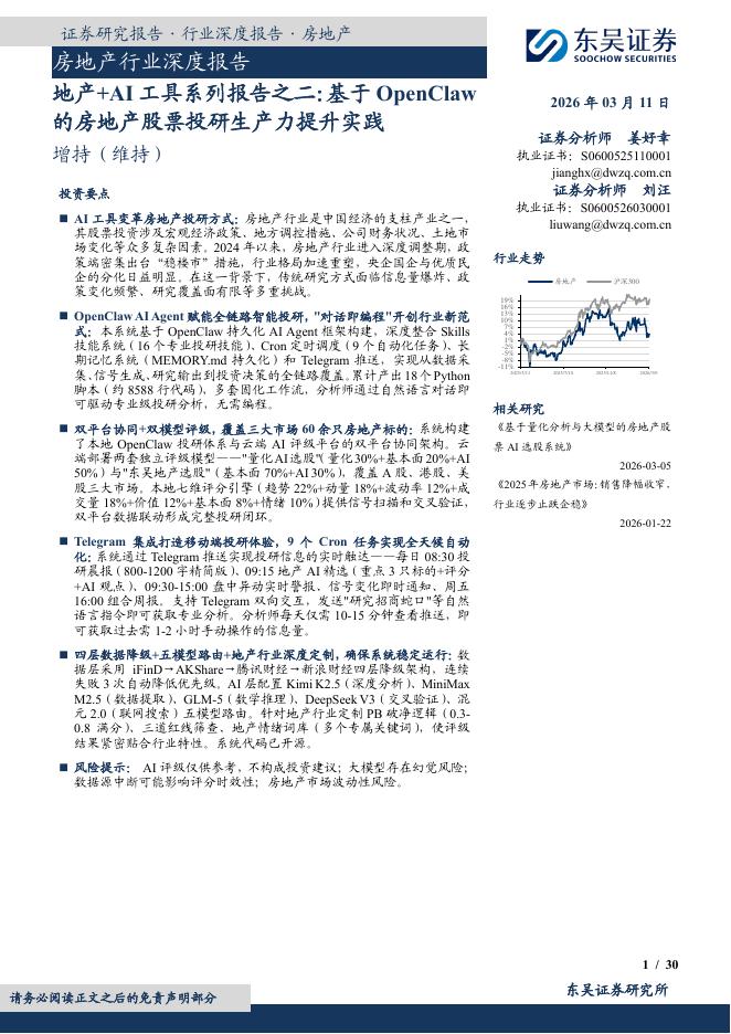 东吴证券:地产+AI工具系列报告之二:基于OpenClaw的房地产股票投研生产力提升实践.pdf