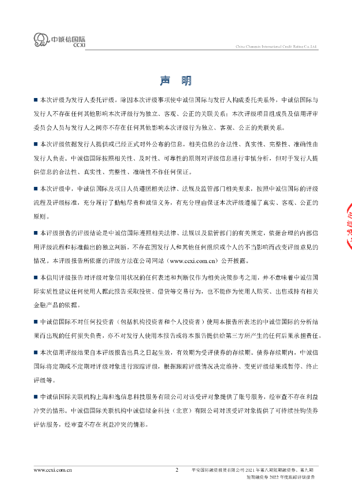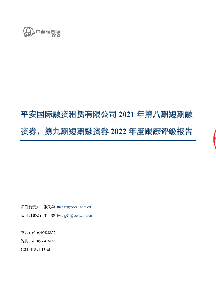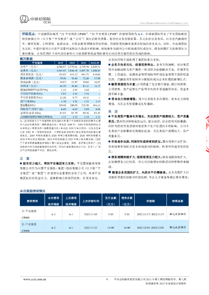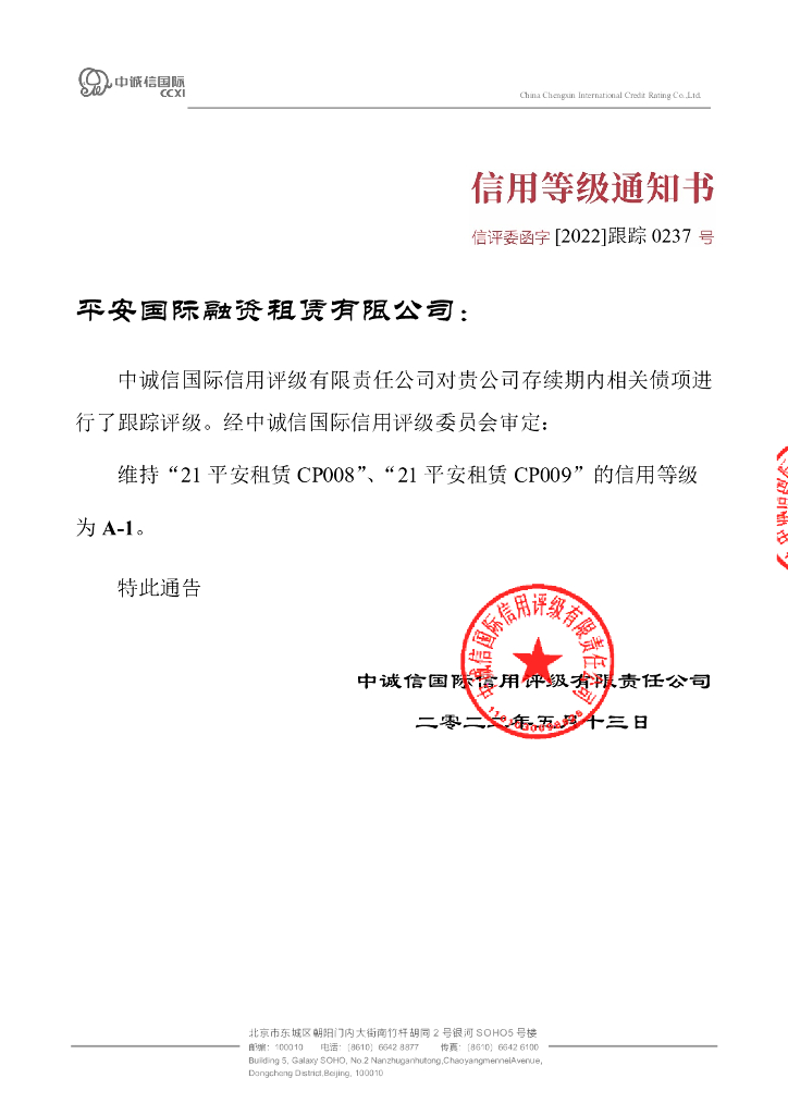中诚信:平安国际融资租赁有限公司2021年第八期短期融资券、第九期短期融资券2022年度跟踪评级报告.pdf
