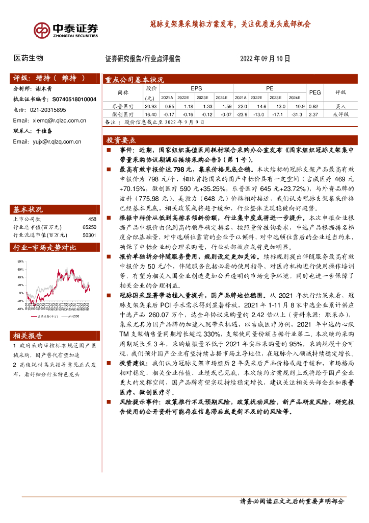 中泰证券:医药生物:冠脉支架集采续标方案发布,关注优质龙头底部机会.pdf