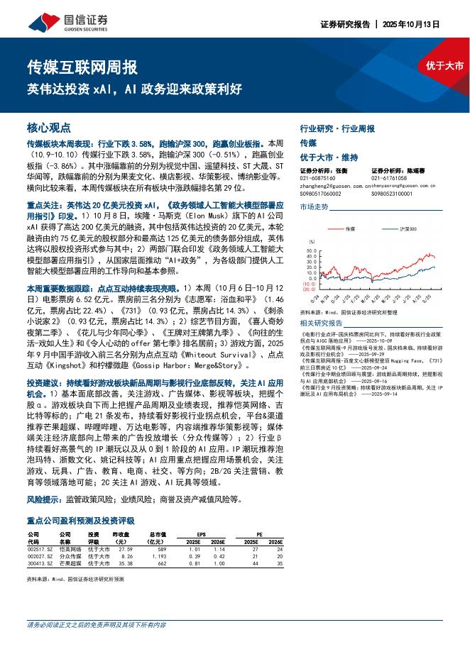 国信证券:传媒互联网行业周报:英伟达投资xAI,AI政务迎来政策利好.pdf